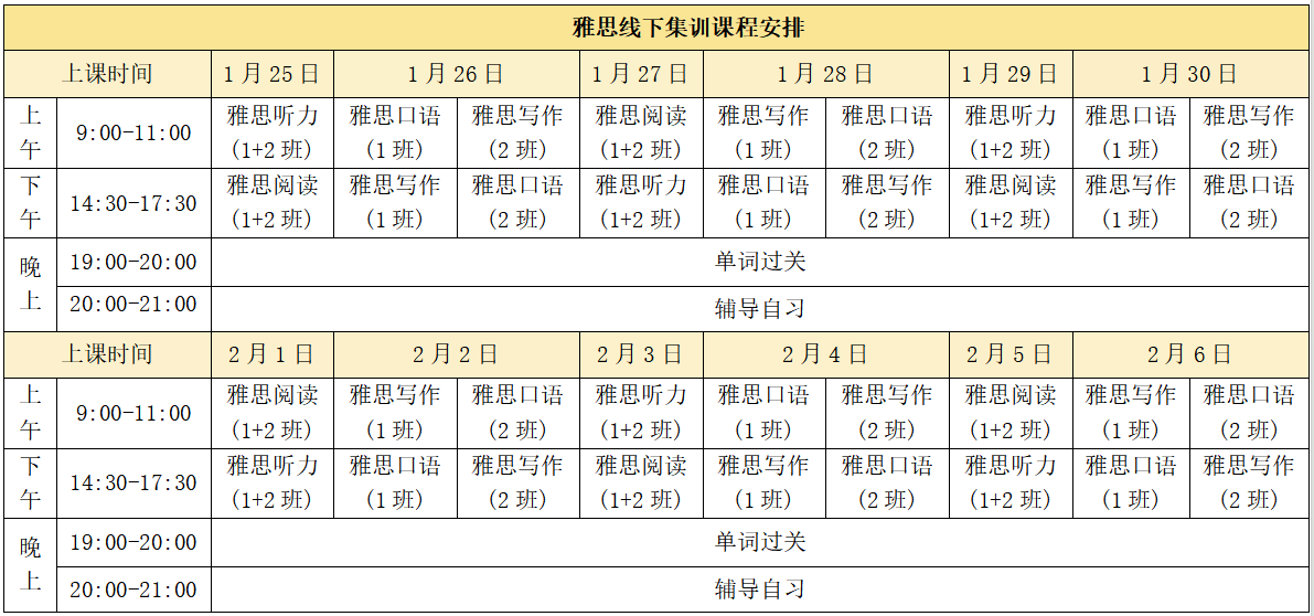结课考试:课程结束后,将于2025年2月10日统一组织雅思考试。