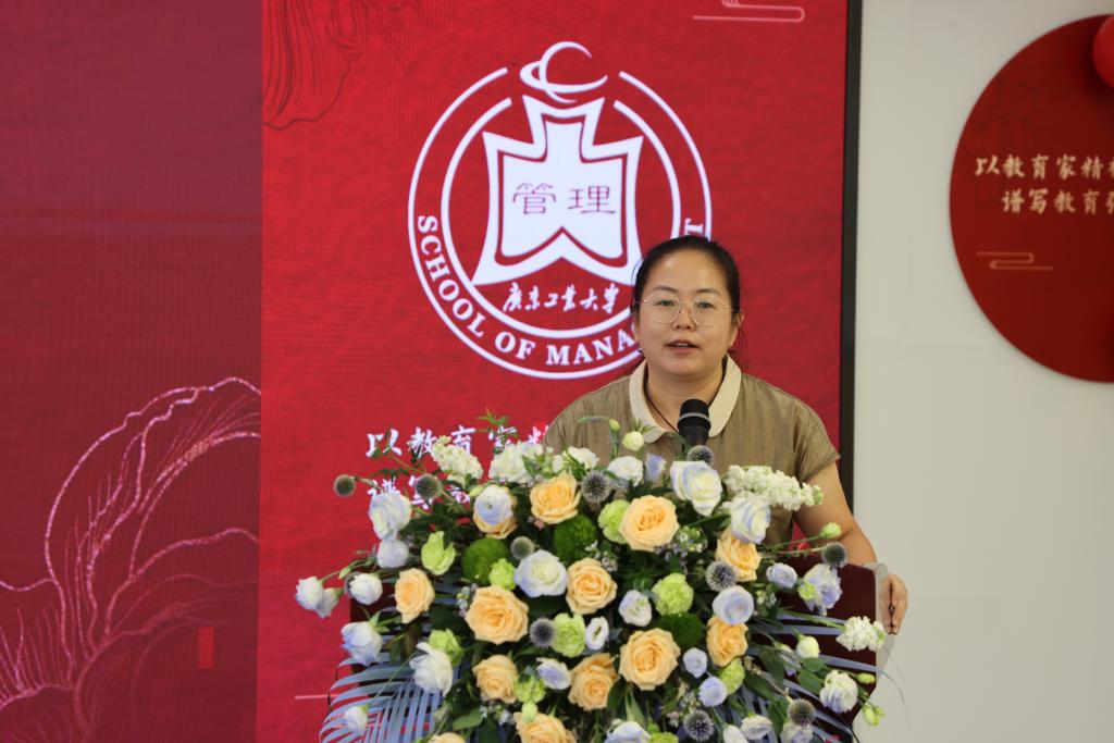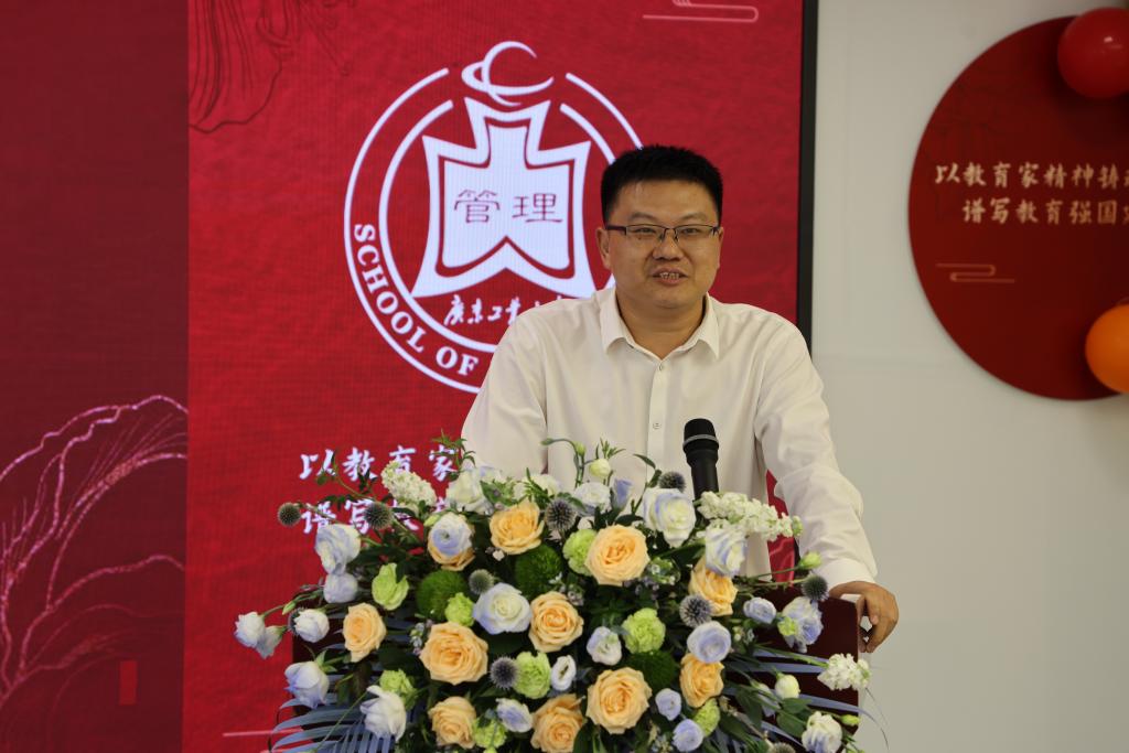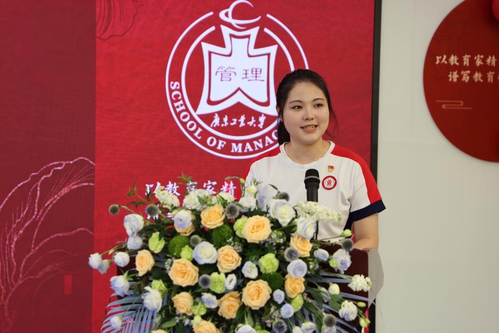 学生代表钟心雨向老师们致以诚挚的节日祝福,感谢老师们默默耕耘,辛苦付出,在学习上传道受业解惑,在生活中指点迷津,并表示作为新时代的广工学子,要将与广东崛起共成长、为广东发展做贡献为己任,不断成长,为学院、为学校增光添彩。