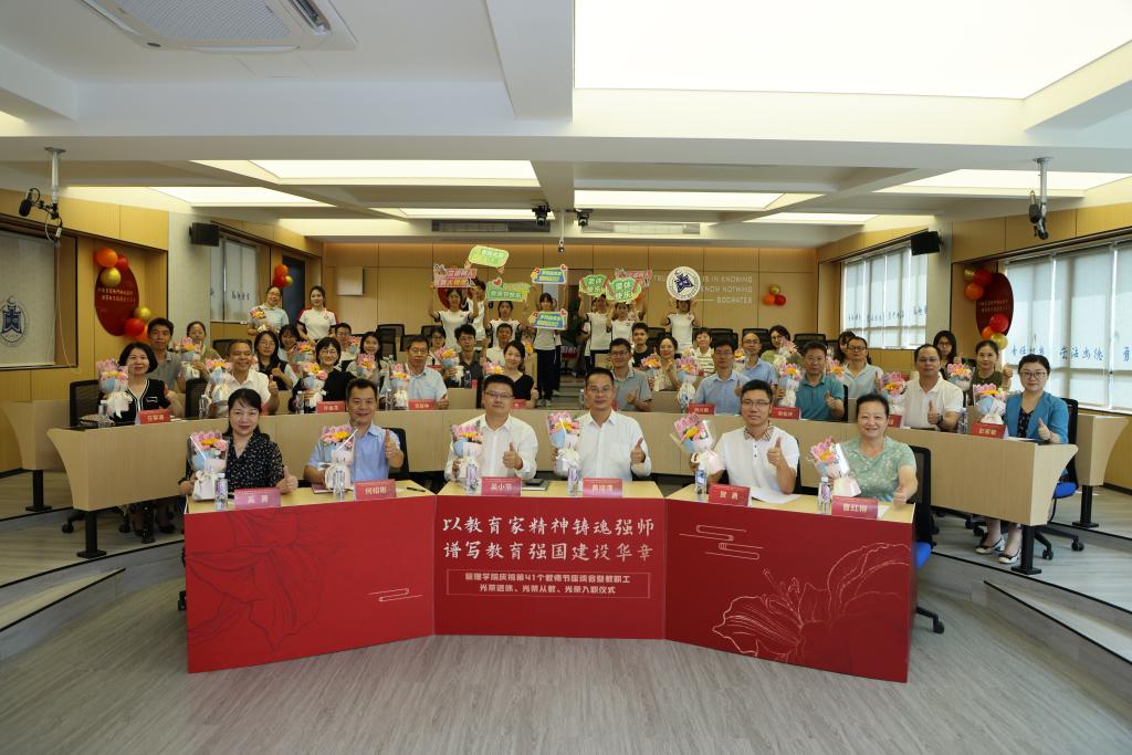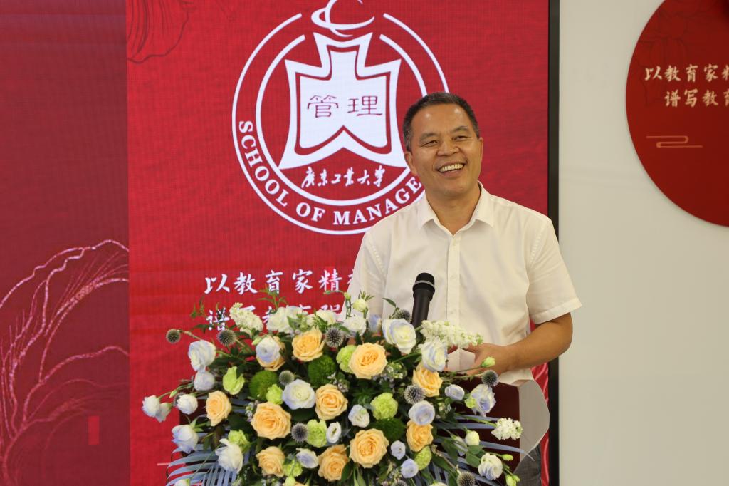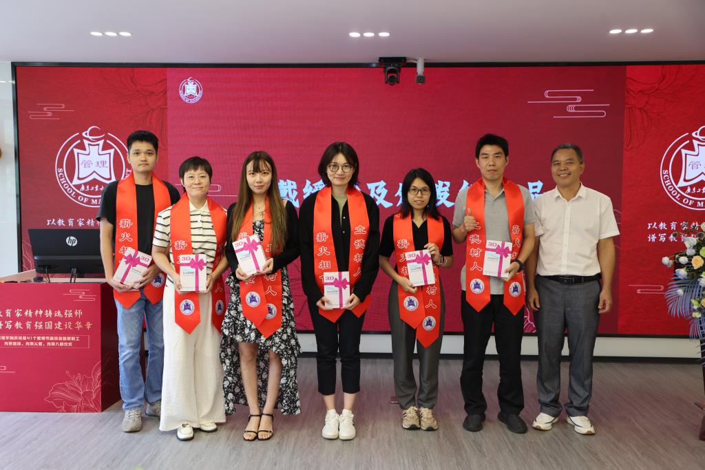 为全面落实立德树人根本任务,坚持以习近平新时代中国特色社会主义思想为指导,大力营造尊师重教的良好氛围,9月9日下午,学院以“以教育家精神铸魂强师,谱写教育强国建设华章”为主题,在学院智慧教室a南406召开2025年管理学院庆祝第41个教师节座谈会暨教职工光荣退休、光荣从教、光荣入职仪式,学院领导班子成员、各系所中心主任、教工党支部书记、党政办公室主任、工会主席、荣休教职工、新入职教职工、工会委员和学生代表共50余人参加了活动,会议由学院党委副书记何绍彬主持。