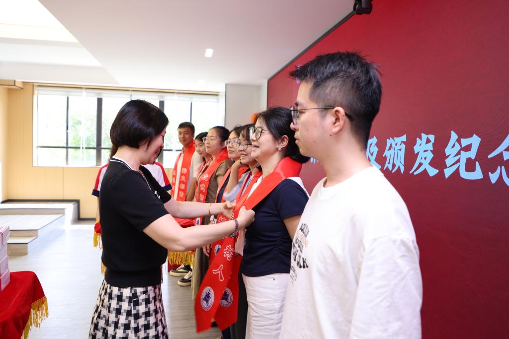 新入职教师代表李红玉、赵友依次发言,他们首先致敬荣休教师和从教30年教师,表示要接过前辈的接力棒,大力弘扬教育家精神,努力成为有理想信念、有道德情操、有扎实学识、有仁爱之心的好老师,着力培养德智体美劳全面发展的社会主义建设者和接班人!随后荣休教师为新入职教师佩戴“立德树人,薪火相传”绶带并颁发纪念品。