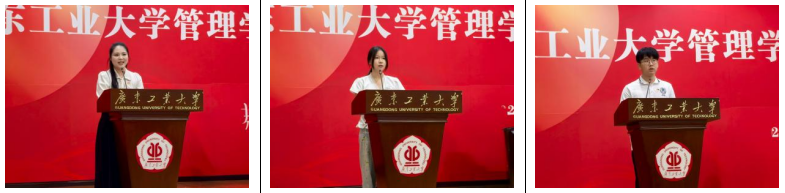 在校生代表2022级信息管理与信息系统2班钟心雨、2025级本科生新生代表高梅欣、2025级研究生新生代表罗宏涛分别发言,他们结合在校成长、目标规划与未来展望,分享了在管院的所学所感,表达了将勤学不辍、勇于实践,与学院共奋进的坚定决心。