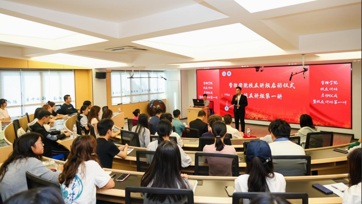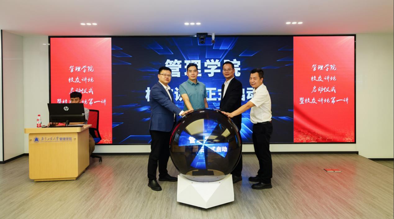 随着启动球的亮起,管理学院校友讲坛正式启动。未来,讲坛将围绕“常态化、品牌化、实效化”三大方向,定期邀请各行业优秀校友返校分享,聚焦金融、制造、数字经济等前沿领域,推动校友企业与学院共建实践实习基地,实现课堂理论与职场实战的良性对接。