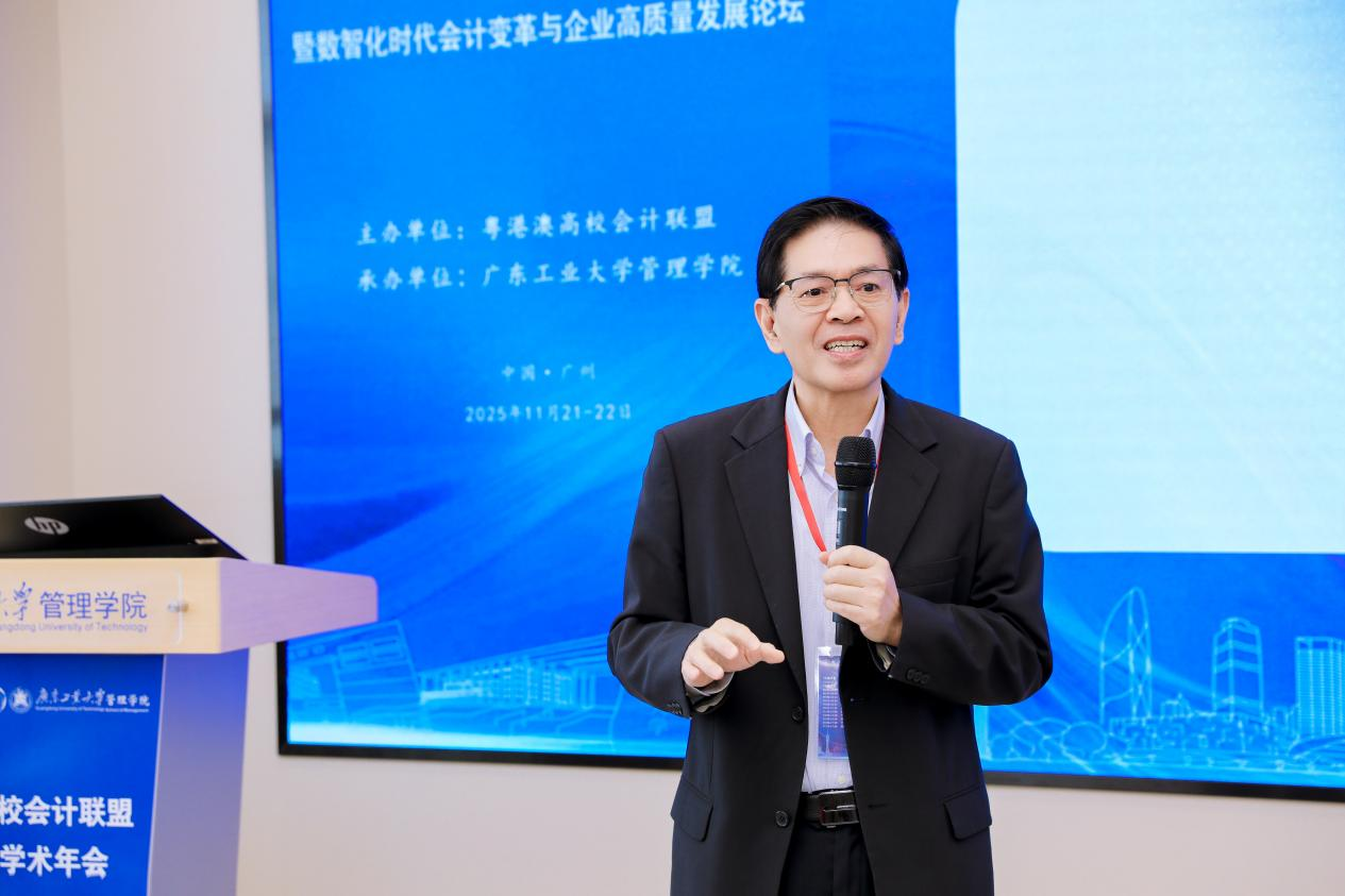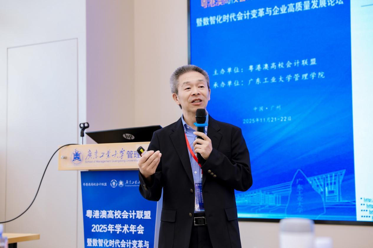 2025年11月22日,粤港澳高校会计联盟2025年学术年会在广州圆满落幕。年会由粤港澳高校会计联盟主办、广东工业大学管理学院承办,以“数智化时代会计变革与企业高质量发展”为主题,来自粤港澳三地和全国多所高校的260余位专家学者及师生代表参会。年会以高水平主题报告、平行论坛研讨等多元形式,深度剖析数智时代会计领域的创新变革路径与实践应用方向,为推动区域会计学科高质量发展、赋能产业转型升级注入了强劲学术动能。