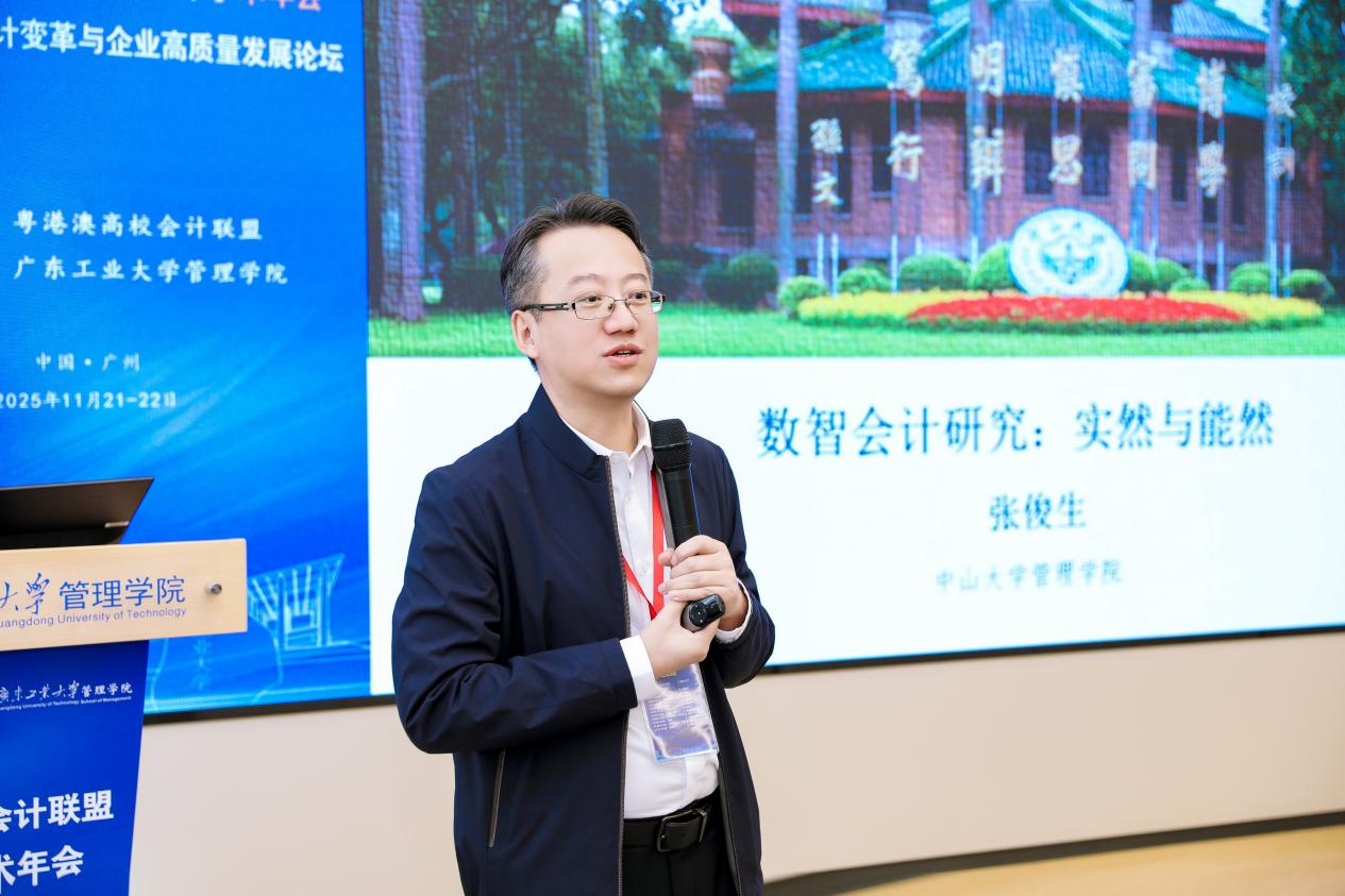 中山大学张俊生教授以《数智会计研究:实然与能然》为题,梳理数智会计当前研究的八大类型(含工具性、应用性、定性、测试性等研究),并提出未来三大核心方向:一是实践融合,如加密资产的确认、列报和信息披露;二是理论构建,如社会—技术体系理论、人—机代理问题等;三是方法论转型,推动从“经验驱动 向“科学驱动”的研究范式转型。