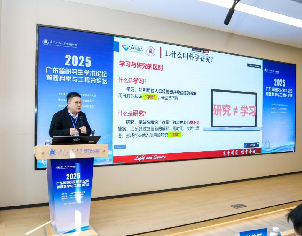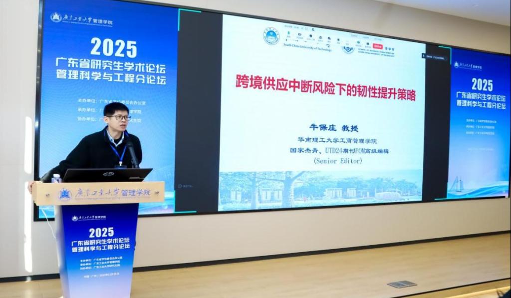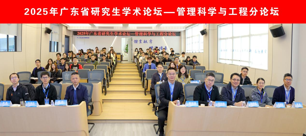 2025年12月28日,由广东省学位委员会办公室主办、广东工业大学管理学院承办、广东工业大学研究生院协办的2025年广东省研究生学术论坛——管理科学与工程分论坛在龙洞校区成功举办。本次论坛旨在促进管理学科前沿交流,提升研究生学术创新能力,吸引了来自香港城市大学、南京大学、西安交通大学、东南大学、中山大学、华南理工大学、中国农业大学、江南大学、中南财经政法大学、温州肯恩大学、广东工业大学、广州大学等省内外30余所高校及科研院所的120多位博士生、硕士生和青年教师参会交流。