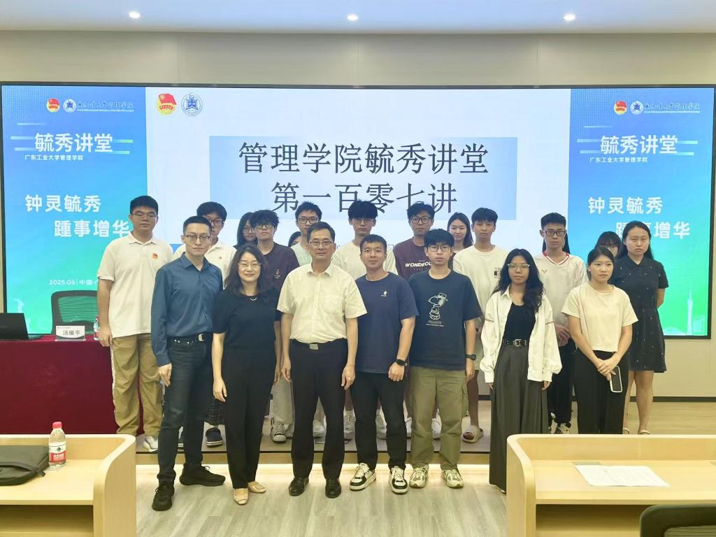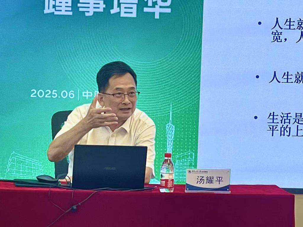 6月12日,管理学院第107讲“毓秀讲堂”暨关工委讲座在管理学院a南607教室顺利举行。本期讲座以“专业选择与职业生涯”为主题,特邀硕士生导师、广东工业大学党委原副书记、纪委原书记、关工委副主任、老教授协会会长汤耀平教授担任主讲嘉宾,讲座吸引了100余名师生参与。
