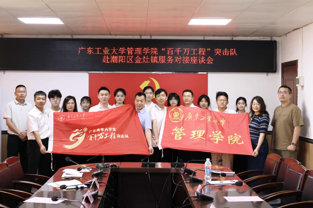 为深入学习贯彻习近平总书记关于青年工作的重要思想,扎实推进“百千万工程”,助力县镇村实现高质量发展战略目标。7月7日,我院“驿路先锋”突击队奔赴汕头市潮阳区金灶镇开展实践行动。当日,学校“双百行动”驻潮阳区服务队队长、校党委学生工作部副部长何祉源,管理学院党委副书记何绍彬,团委书记吴燕鹏,管理学院数据科学与商务智能系副主任武赛及辅导员邱益淳带队参加对接座谈会。汕头市潮阳区⾦灶镇党委副书记吴潮锋,金灶镇党委副书记、深圳对口帮扶协作汕头驻金灶镇工作队队长林泽丹,汕头市潮阳区⾦灶镇团委书记黄灿佳,驻金灶镇工作队副队长王清炜,驻桥陈村第一书记杨文秋出席座谈会。