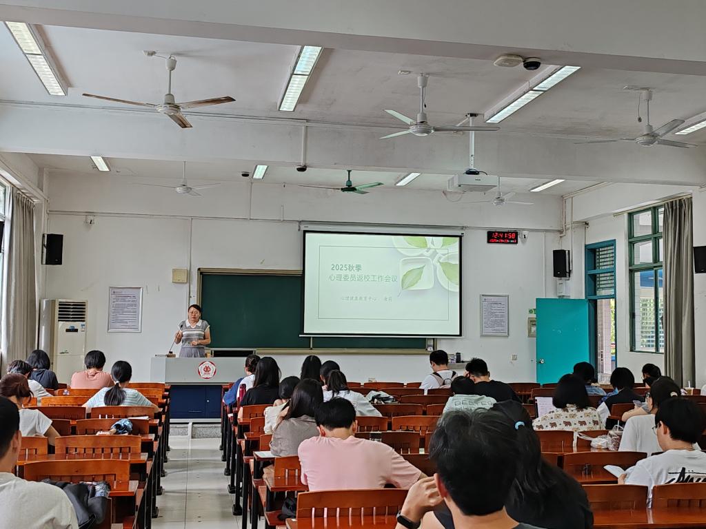 为进一步夯实学院心理健康教育工作基础,提升心理委员的履职能力与服务水平,9月3日中午,我院在教学楼105教室举办2025年秋季心理委员专题培训。学校心理健康教育中心唐莉老师受邀担任主讲嘉宾,学院全体班级心理委员参会,培训由学院辅导员、心理指导老师余娟主持。