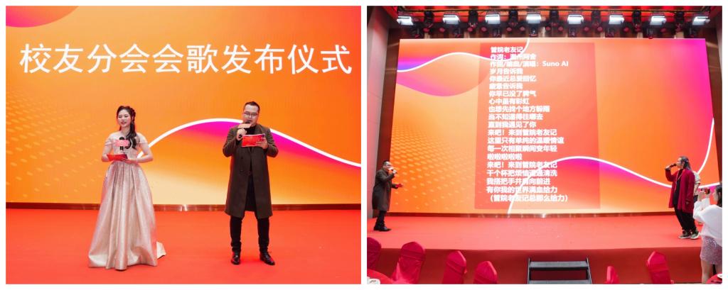 现场还举行了简短而庄重的校友分会会歌《管院老友记》发布仪式。随着欢快、昂扬的青春旋律响起,歌词中承载的同窗岁月与并肩奋斗的记忆激情流淌,触动了在场每一位校友的心弦。