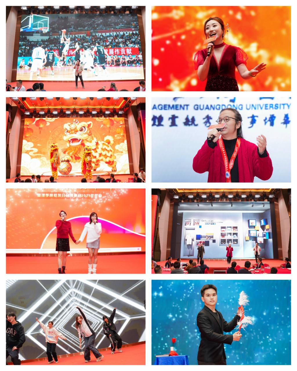 仪式之后,年会晚会正式拉开序幕。各地校友代表和学院艺术团、学生社团的同学们联袂登台献艺,表演了醒狮舞、歌曲串烧、舞蹈、魔术等精彩节目,将年会的温情氛围推向高潮。(图/管理学院,文/张涵喆、明亮)