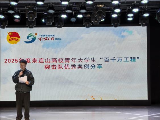 2025年12月20日下午,清远市连山壮族瑶族自治县共青团团委隆重举办2025年度来连山高校青年大学生“百千万工程”突击队成果展示活动,我院“青耘未来”突击队欧文杰同学作为优秀队伍代表进行了案例分享。
