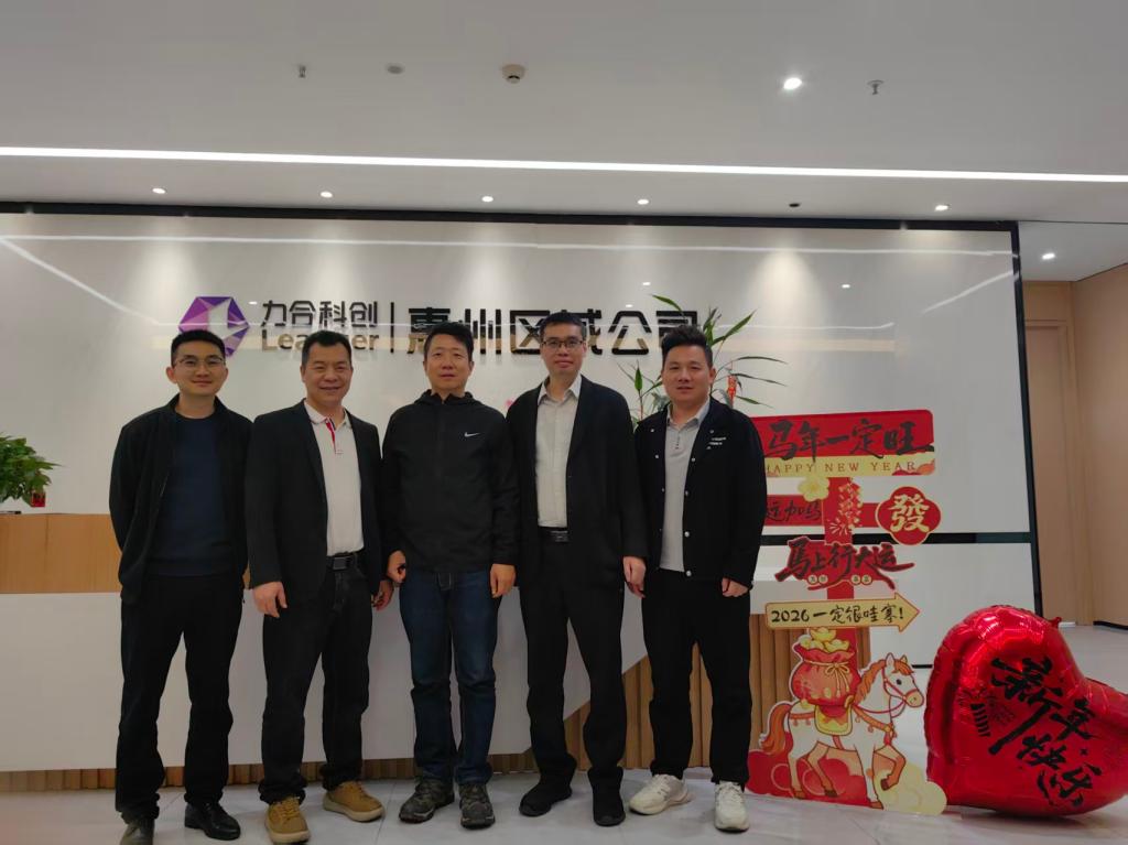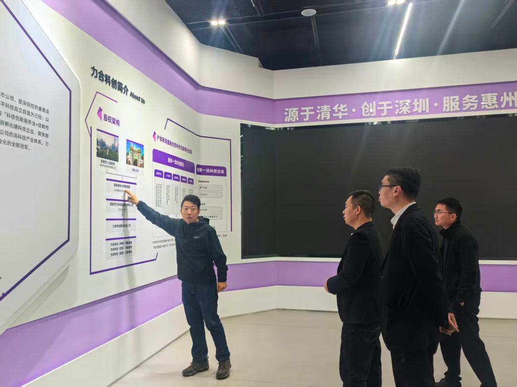在力合科创(仲恺)创新基地,公司副总经理于亚磊向团队详细介绍了公司的业务板块和发展情况。他表示,作为科技创新服务平台,产学研合作是公司发展的基础,今后将联动孵化的30多家优质企业加强与学校的合作,开拓高质量的就业岗位。何绍彬、谭敬康分别介绍了学校、学院的情况,重点介绍了各自学院在科学研究、人才培养、社会服务以及2026届毕业生等方面的情况。双方就联合举办校园招聘会、宣讲会、组织高年级学生深入企业交流、科研合作、科技成果转化等内容进行了深入交流。最后,团队走访了惠州校友会,受到了校友会秘书长刘德龙等校友的热情接待。