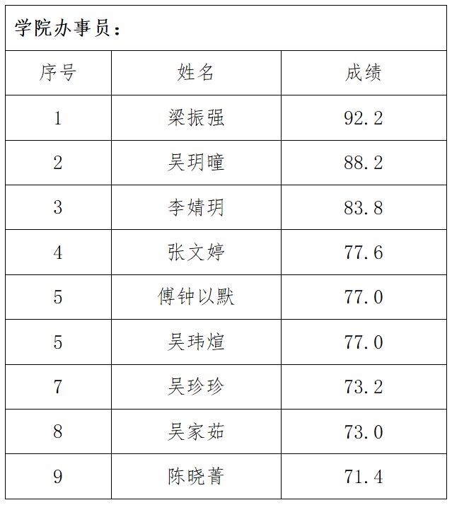 经公开报名、资格审核、面试等工作程序,现将管理学院公开招聘工作人员面试结果予以公示。